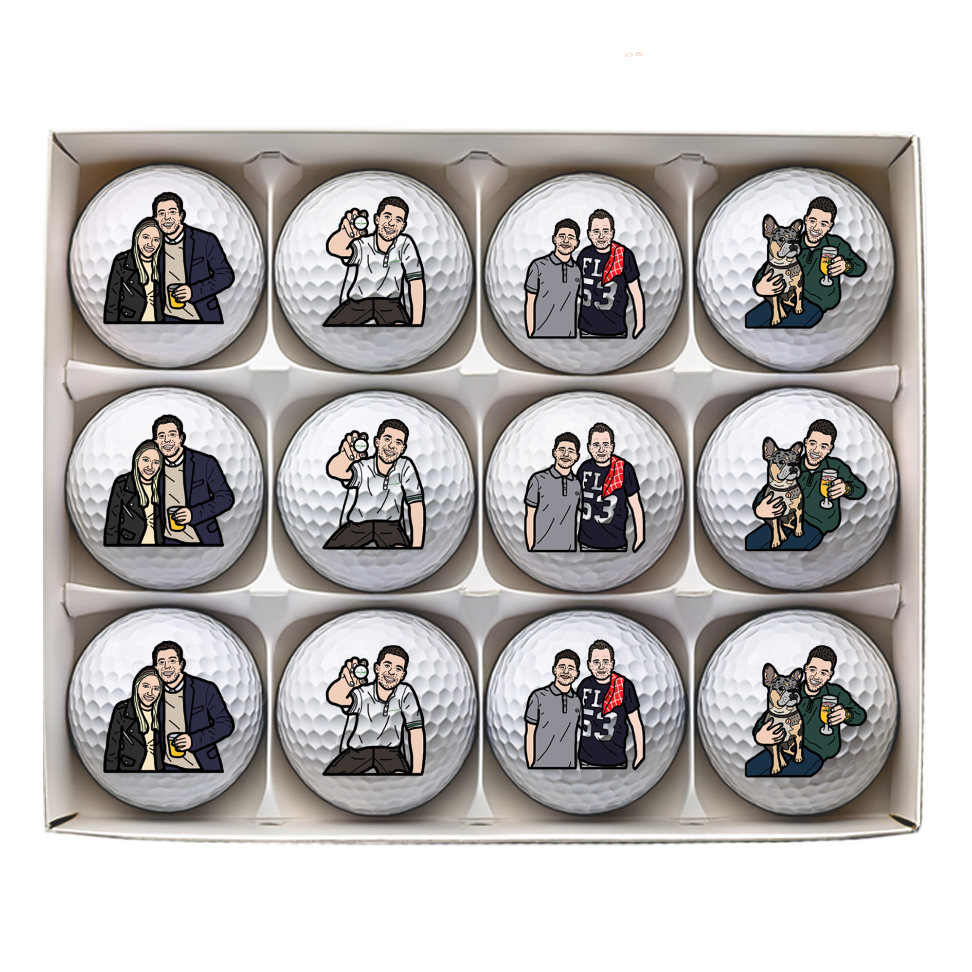 Whether they're for a gift, a golf day or you just want to flex, choose up to three different graphics on each ball for your completely personalised balls like never before!